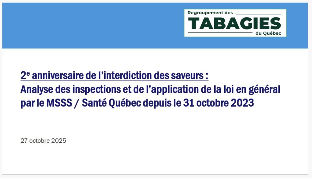 NOUVELLE ENQUÊTE DU RTQ SUR LES PROBLÈMES D’APPLICATION DE LA LOI CONCERNANT L’INTERDICTION DE VENTE DES SAVEURS AUPRÈS DES VAPOTERIES.
